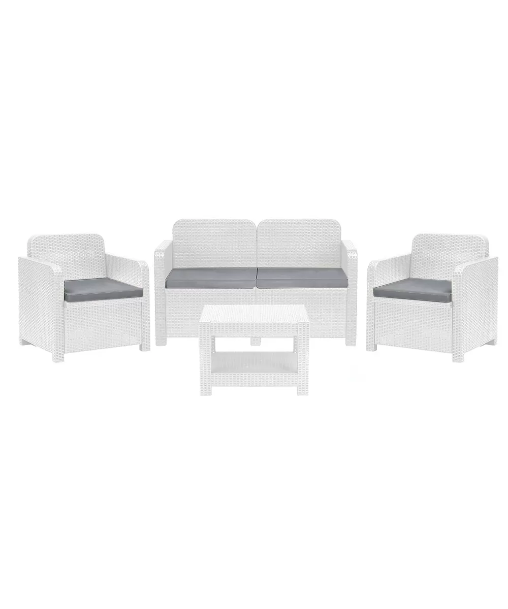 Il set Sorrento è un elegante e confortevole set da giardino composto da due poltrone, un divano 2 posti e un tavolino basso coordinato. Il set è realizzato con un polimero ecologico chiamato Greenpol, che utilizza materiali riciclati, dimostrando un impegno verso la sostenibilità ambientale. Il set Sorrento presenta un design in rattan, che conferisce un aspetto naturale e raffinato al set. Il colore antracite dona un tocco di eleganza e si adatta a diverse tipologie di ambienti esterni. Il materiale Greenpol offre una resistenza superiore all’acqua e agli agenti atmosferici, garantendo la durata del set nel tempo. Le poltrone e il divano del set Sorrento sono dotati di ampie sedute, braccioli e cuscini per la seduta, offrendo il massimo comfort durante l’utilizzo. I cuscini possono essere facilmente rimossi e puliti per mantenere il set sempre fresco e accogliente. Il tavolino da caffè abbinato completa il set, offrendo uno spazio pratico per posizionare bevande, snack o oggetti decorativi. È il luogo ideale per rilassarsi e chiacchierare con gli amici dopo una lunga giornata. Il set Sorrento è facile da montare grazie al suo sistema di montaggio brevettato. Viene fornito in kit, pronto per essere assemblato, offrendo comodità e praticità nell’allestire il tuo spazio esterno.